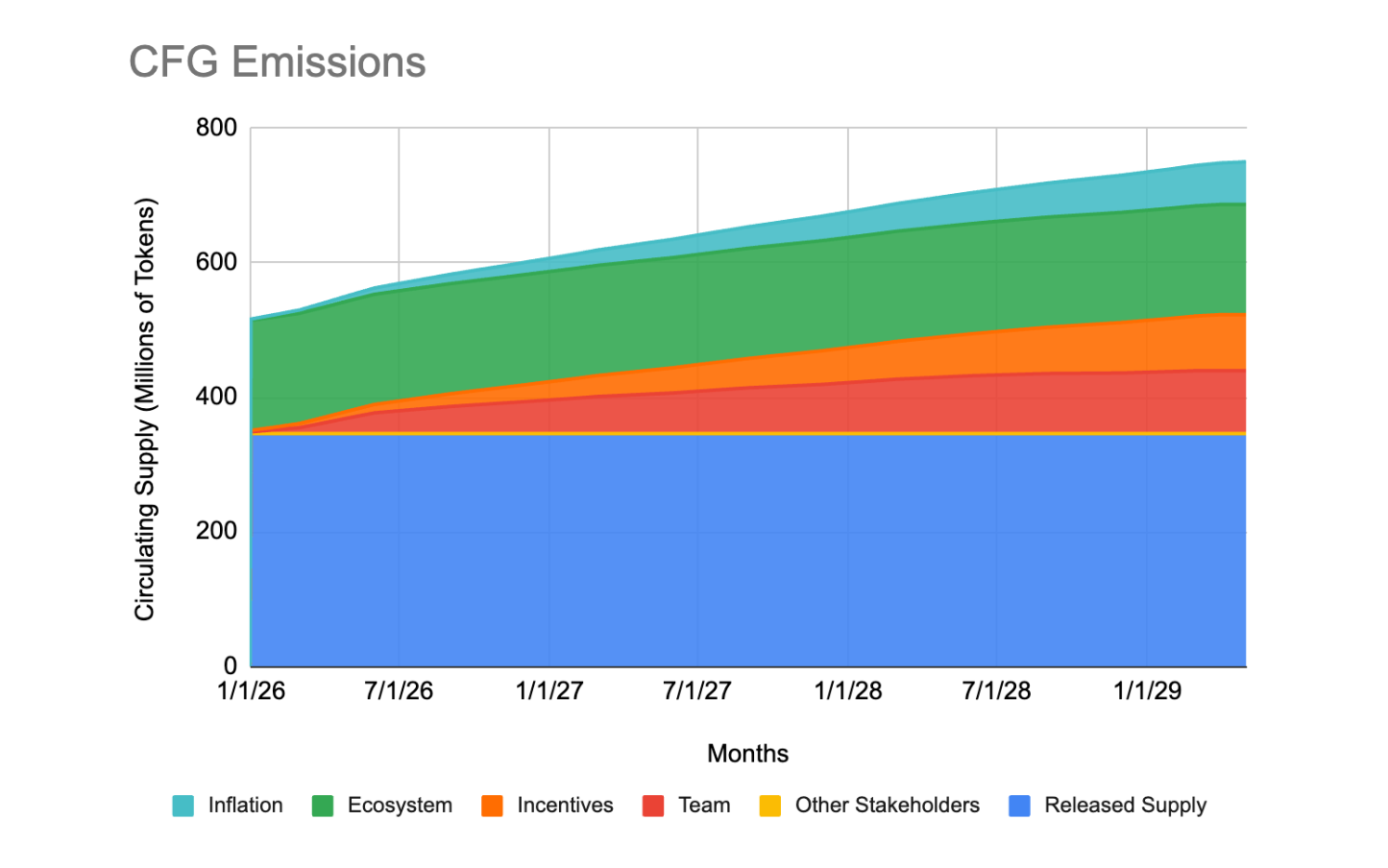 The majority of other stakeholder CFG allocations have already vested; the remaining 0.1% of the total supply that was allocated to other stakeholders will vest over 3 months, through March 2026.